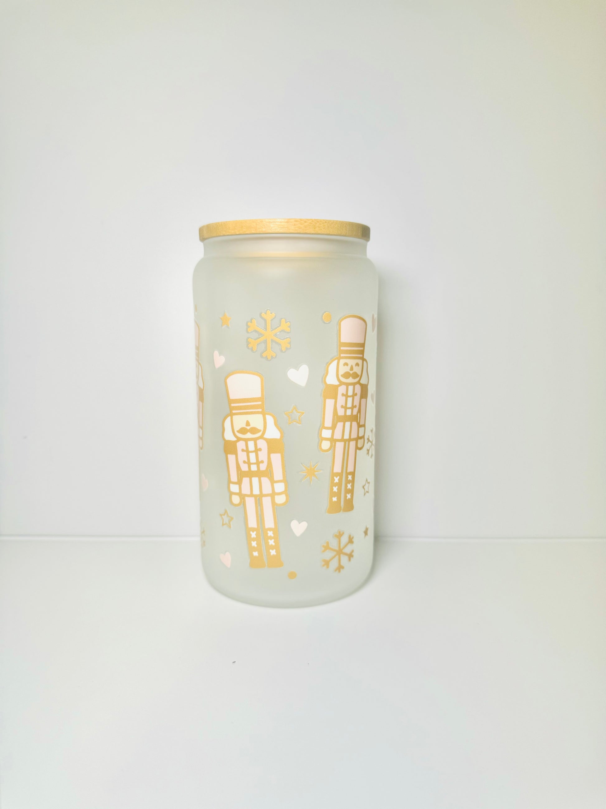 Nutcracker Christmas 16oz Glass Cup with Vibrant DTF Wrap