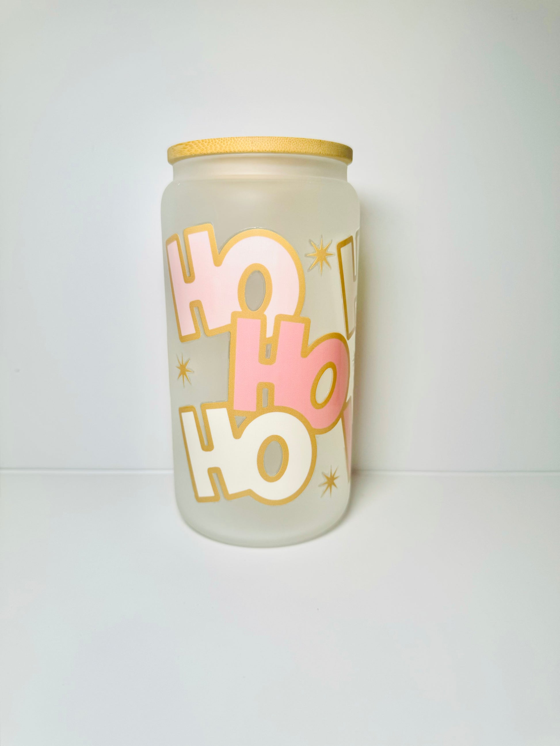 HoHoHo Christmas 16oz Glass Cup with Vibrant DTF Wrap
