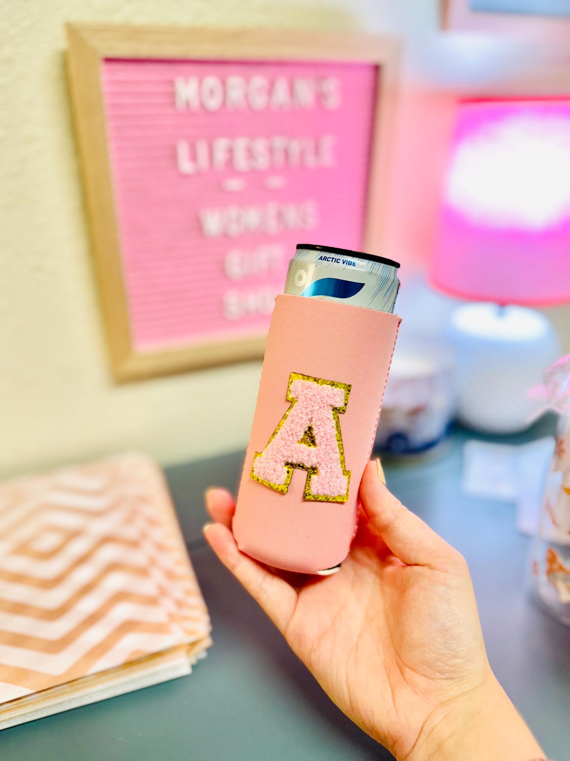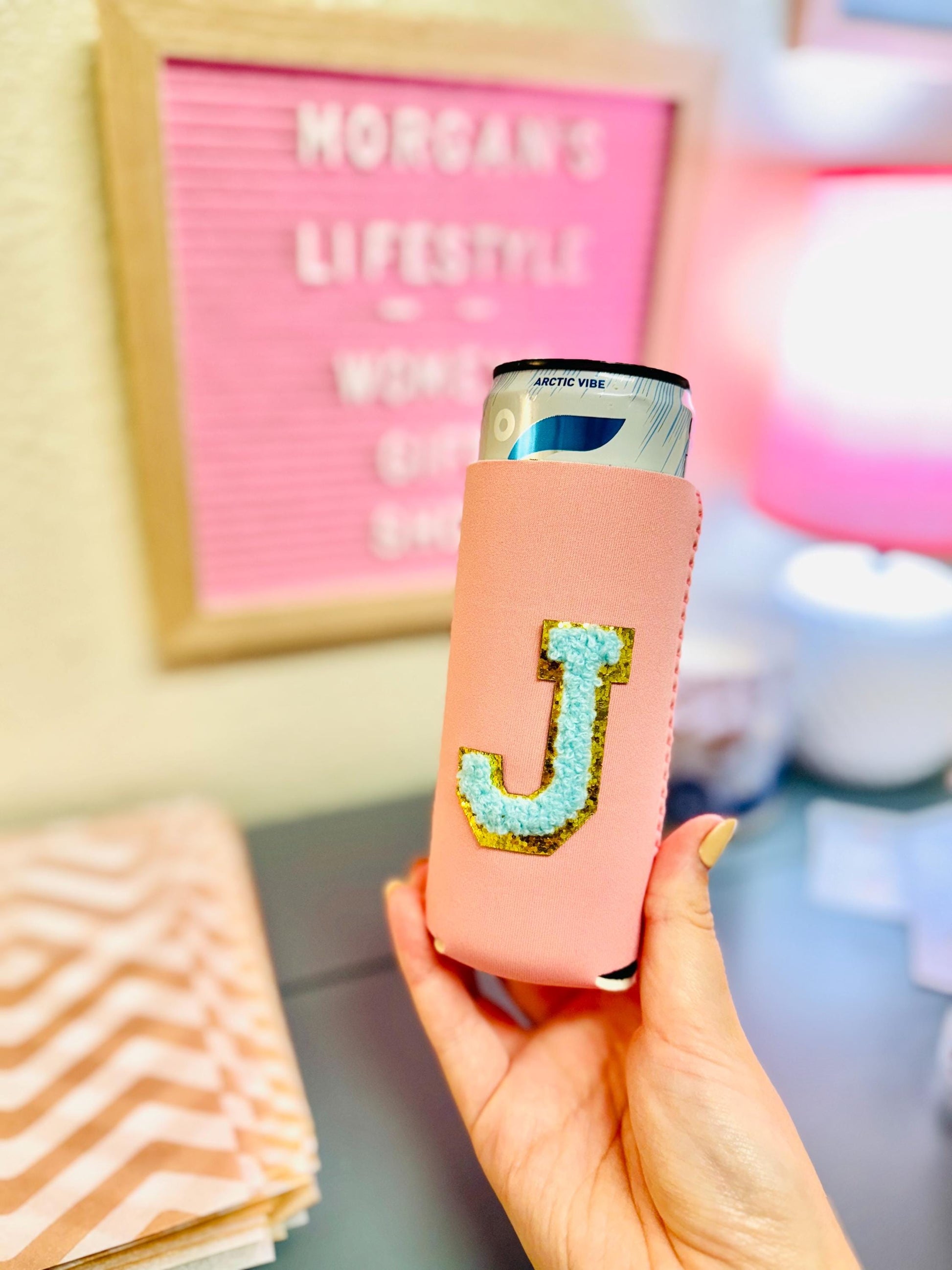 Skinny Can Cooler with Initials Letter Patches for Women and Girls - Perfect for Drinkware and Water bottles
